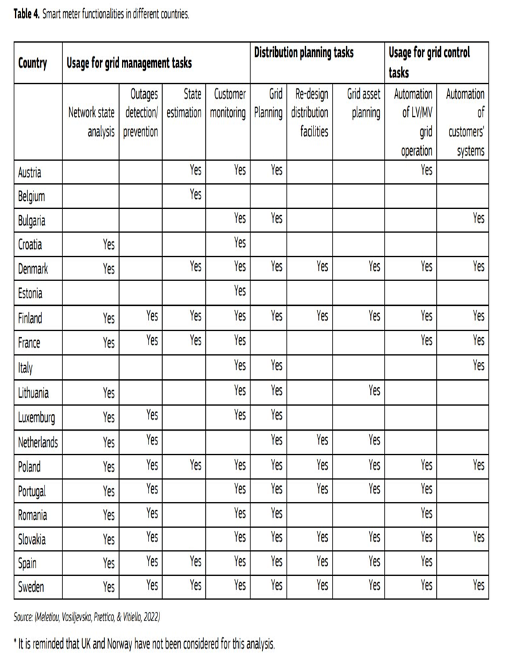 4總結了國家一級的這一信息。每個國家/地區都考慮:如果一個國家/地區的DSO 需要特定功能,則該功能由該國/地區提供。由于該信息是基于歐洲DSO自愿參與專門調查的(備注:表中空格或未提及的國家并不是沒有相關考慮,而是調查者尚未有足夠信息顯示):