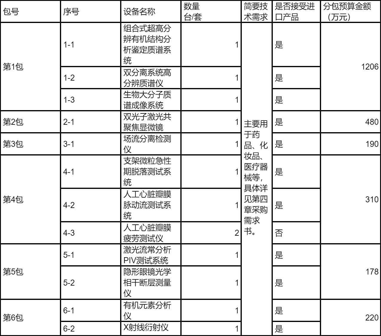 (1)包件1:1-1組合式超高分辨有機結構分析鑒定質(zhì)譜系統(tǒng):486萬元;1-2雙分離系統(tǒng)高分辨質(zhì)譜儀:360萬元;1-3生物大分子質(zhì)譜成像系統(tǒng):360萬元。