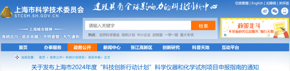 關(guān)于發(fā)布上海市2024年度“科技創(chuàng)新行動(dòng)計(jì)劃”科學(xué)儀器和化學(xué)試劑項(xiàng)目申報(bào)指南的通知滬科指南