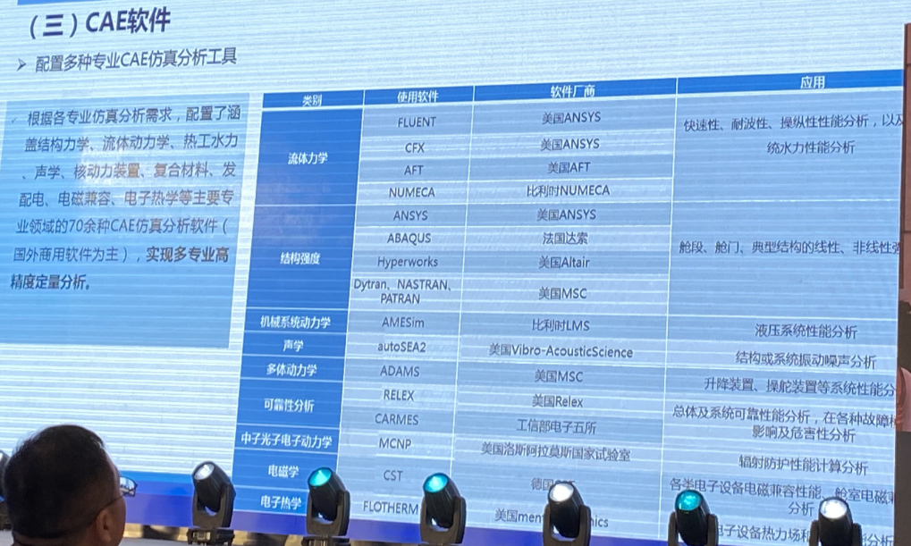 現(xiàn)場(chǎng)某專家稱,根據(jù)各專業(yè)仿真分析需求,他們配置了涵蓋結(jié)構(gòu)力學(xué)、流體動(dòng)力學(xué)、熱工水力、聲學(xué)、核動(dòng)力裝置、復(fù)合材料、發(fā)配電、電磁兼容、電子熱學(xué)等主要專業(yè)領(lǐng)域的70余種CAE仿真分析軟件(國(guó)外商用軟件為主),實(shí)現(xiàn)多專業(yè)高精度定量分析。
