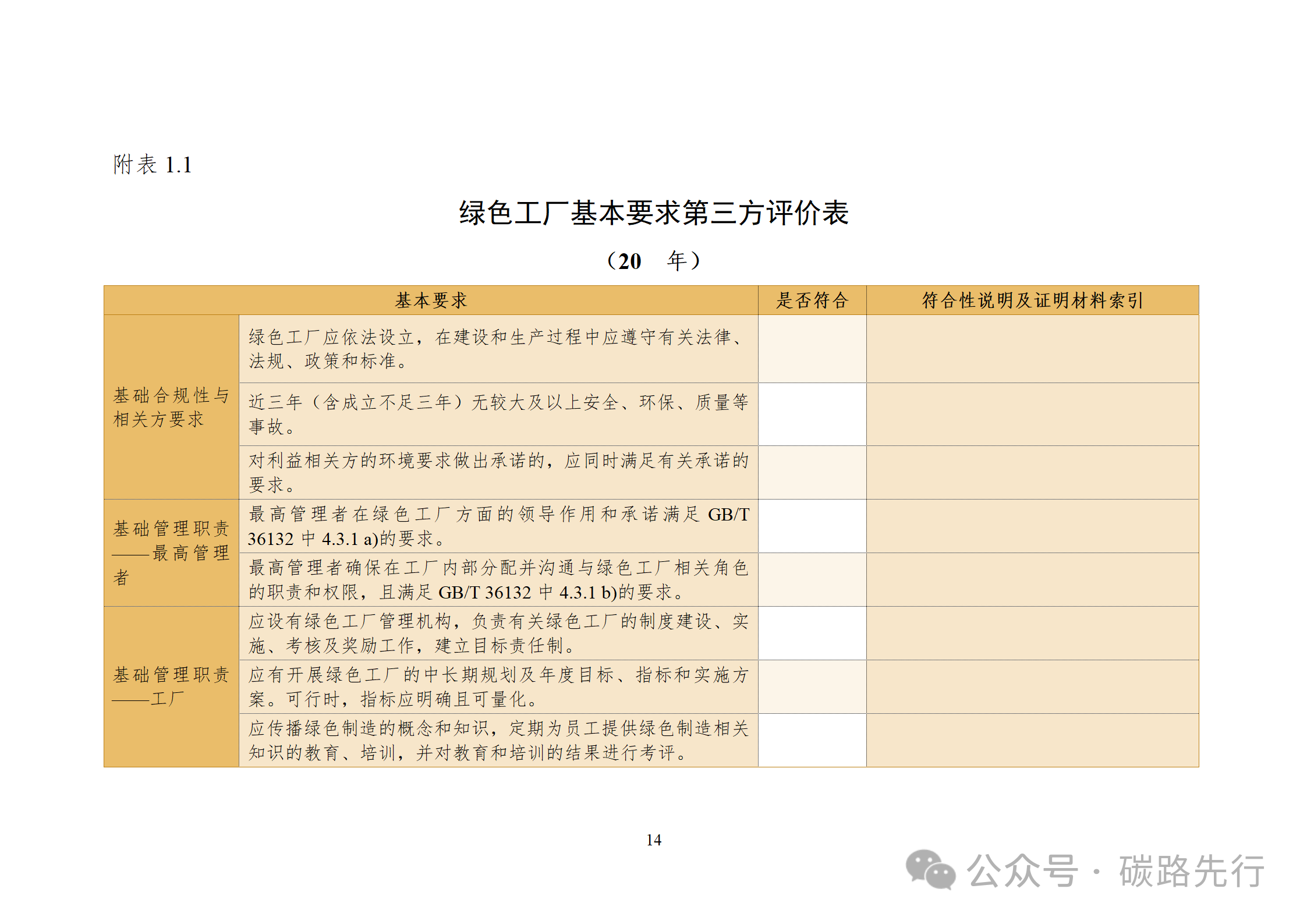 ①綠色工廠基本要求的符合情況;②6個(gè)一級指標(biāo);③加分項(xiàng):“零碳”工廠創(chuàng)建方面開展的工作情況。