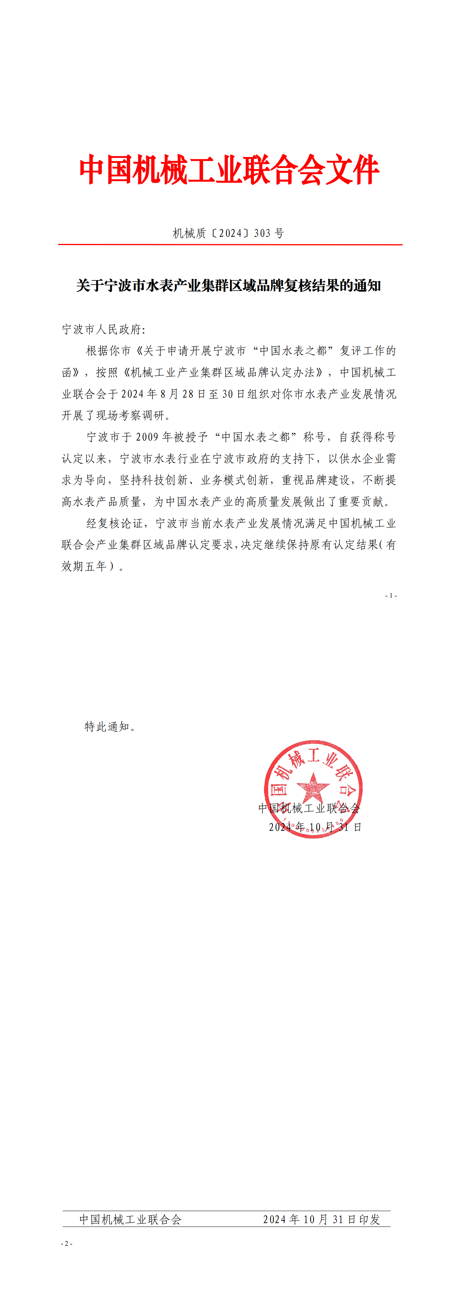 最終,寧波市憑借當前水表產業高質量科技創新成果及高效快速的發展趨勢,再次榮獲“中國水表之都”稱號。相信未來,在寧波市政府的大力推動下,在行業各界的持續努力下,“中國水表之都”的稱號也將享譽全球,寧水集團也愿為此榮耀,奮斗終身!