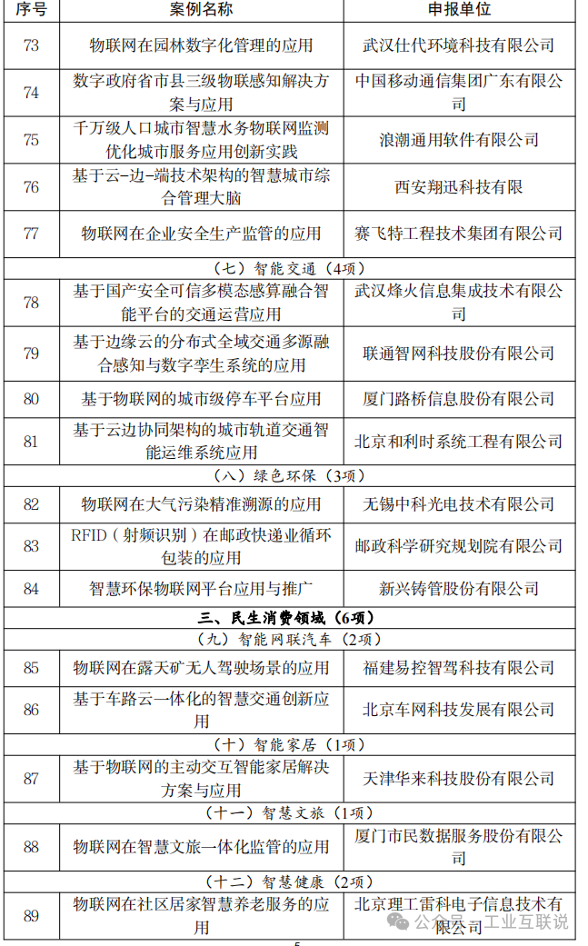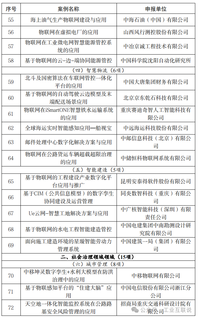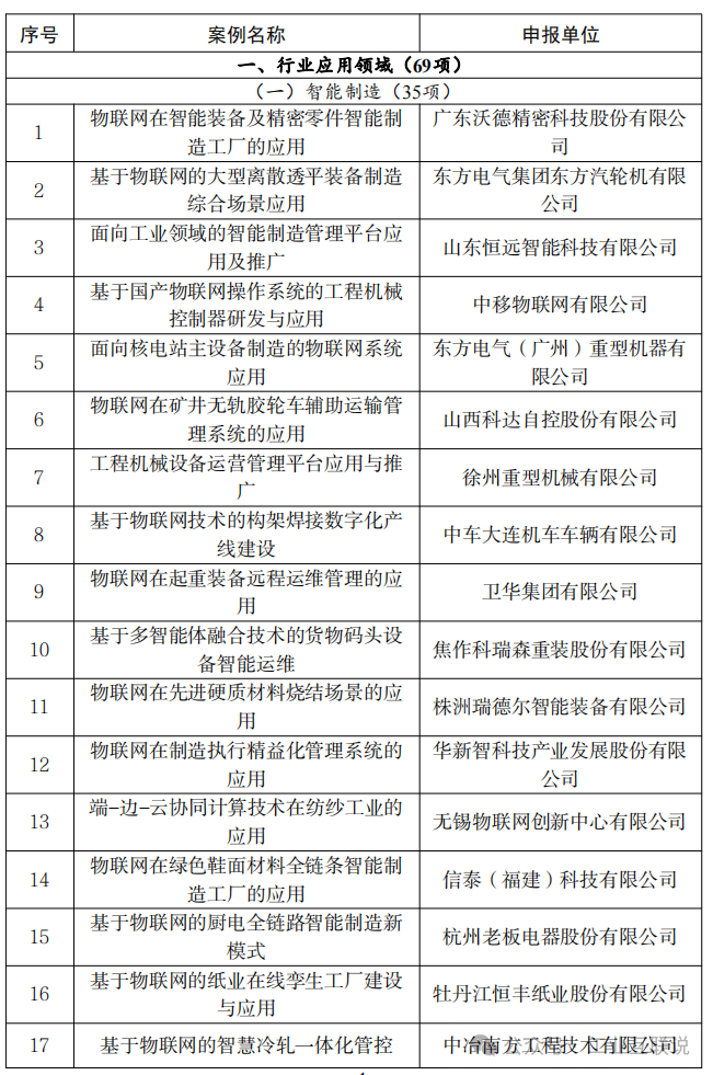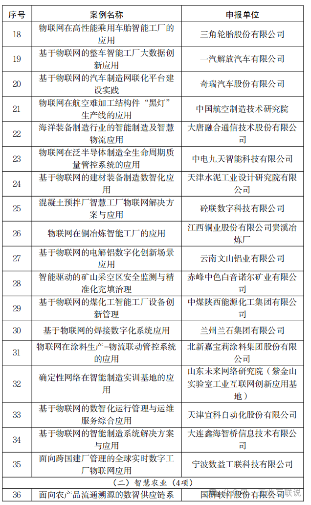 附件:2024年物聯網賦能行業發展典型案例名單