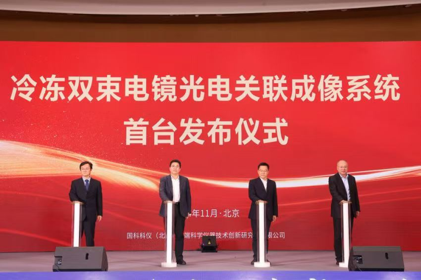 2023年,在北京市科委、中關村管委會和懷柔科學城管委會指導支持下,國科儀器依托中國科學院生物物理研究所研究成果,聯合國科科儀控股有限公司體系內南京天儀、北京科儀等多家企業,聯動創新、協同攻關,共同開展該成果工程化開發和產業化工作。本次推出的首臺冷凍雙束電鏡光電關聯成像系統,是研究所與相關企業聯合開展技術攻關的新嘗試,開創了科技成果工程化開發轉化的新機制。
