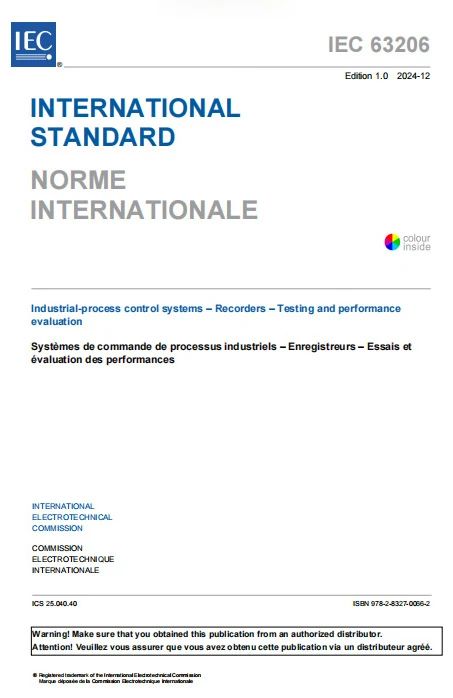 由自?xún)x院主導(dǎo)制定的國(guó)際電工委員會(huì)(IEC)國(guó)際標(biāo)準(zhǔn)IEC 63206:2024《工業(yè)過(guò)程控制系統(tǒng) 記錄儀 試驗(yàn)和性能評(píng)定》于2024年12月正式發(fā)布。