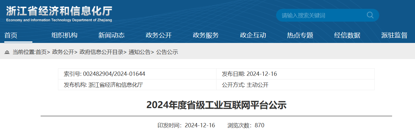 正泰儀表入選“2024年度省級工業(yè)互聯(lián)網(wǎng)平臺”
