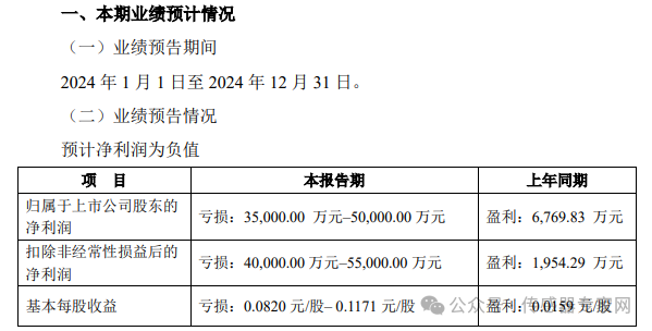 公司預(yù)計 2024 年度實現(xiàn)扣除非經(jīng)常性損益后歸屬于母公司所有者的凈利潤-49,000.00 萬元至-41,000.00 萬元,較上年同期相比,將減少 1,687.93 萬元至9,687.93 萬元。