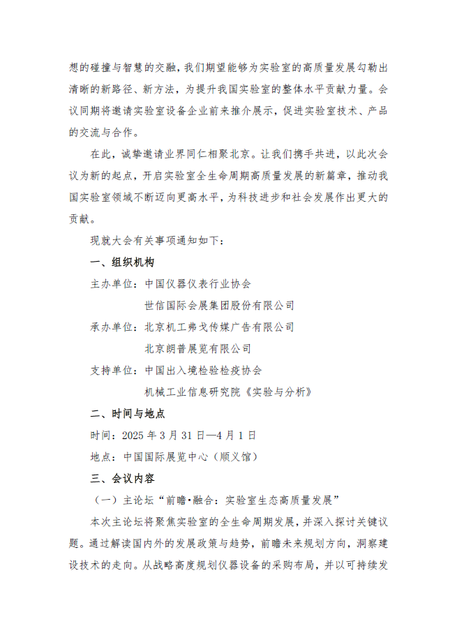 我們誠摯邀請您參加第六屆中國實驗室發展大會,讓我們攜手共進,以此次會議為新的起點,開啟實驗室全生命周期高質量發展的新篇章,推動我國實驗室領域不斷邁向更高水平,為科技進步和社會發展作出更大的貢獻。