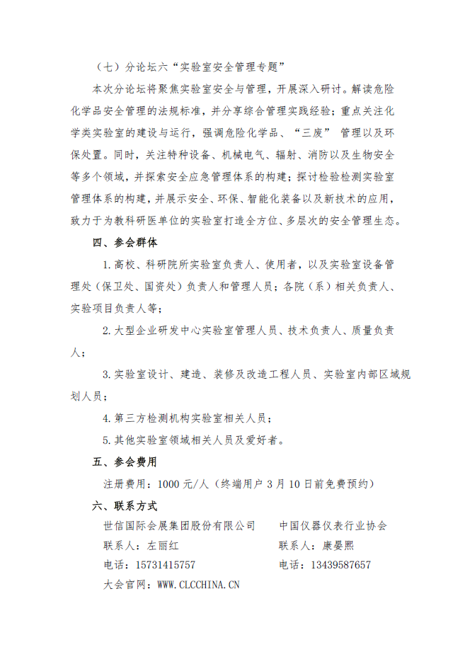 在當今科技日新月異的時代背景下,實驗室作為科技創新的重要陣地,承載著推動知識進步、技術突破的關鍵使命。從實驗室的規劃與建設,到日常的運維管理,再到科研成果的產出與轉化,每一個環節都關乎著實驗室的潛力能否充分發揮。中國儀器儀表行業協會和世信國際會展集團股份有限公司充分利用北京機工弗戈傳媒廣告有限公司舉辦過多屆實驗室設計建設與安全管理會議及培訓的經驗,共同舉辦第六屆中國實驗室發展大會。CLC2025第六屆中國實驗室發展大會設置一個主論壇和六個分論壇。主論壇以前瞻・融合:實驗室生態高質量發展為主題,六個分論壇分別在實驗室設計建設優化、實驗室智慧化運營、實驗室可持續發展、實驗室質量管理、高校實驗室多元發展與創新實踐、實驗室安全管理等六個專題方面,全面深入地探討從實驗室設計規劃、建設、儀器設備采購、運維等整個生態系統的寶貴經驗、見解和前沿解決方案,審視實驗室在全生命周期中面臨的挑戰與機遇,共同探索創新的理念和方案,推動實驗室的高效卓越發展。一、