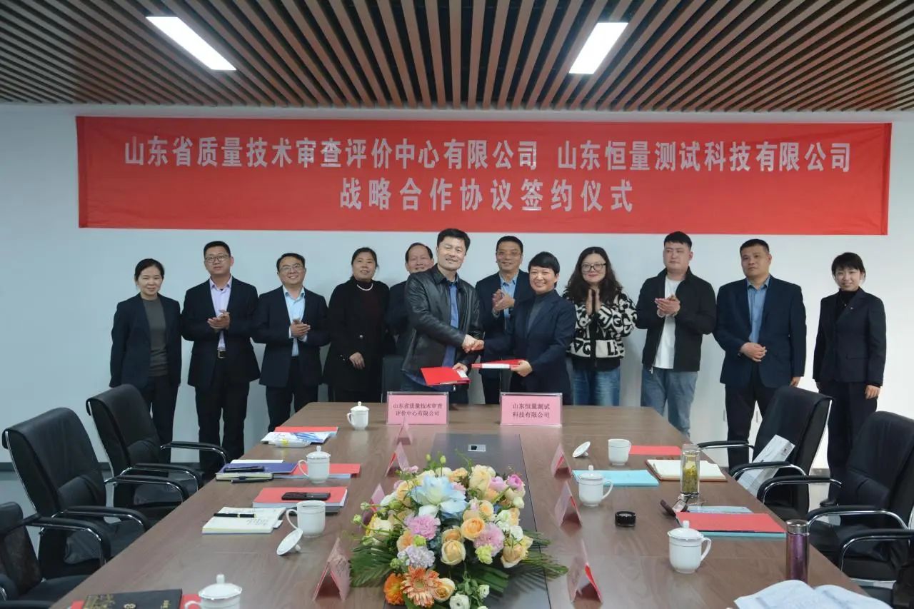 3月11日下午,山東省質(zhì)量技術(shù)審查評價中心有限公司黨委書記、總經(jīng)理汪立新一行蒞臨山東恒量測試科技有限公司,與總經(jīng)理岳宗龍進(jìn)行了深度交流。雙方基于對行業(yè)發(fā)展的共同愿景,充分探討了合作的新機(jī)遇與新方向,并順利簽署戰(zhàn)略合作協(xié)議。