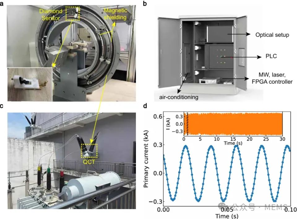 此外,該成果最終應用于安徽合肥110kV變電站的電流實時監(jiān)測,成功實現(xiàn)對三相交流電路中單相電流的實時監(jiān)測。該研究不僅攻克了金剛石量子傳感器的集成化關鍵技術,而且推動了量子傳感技術在工業(yè)領域的應用落地。