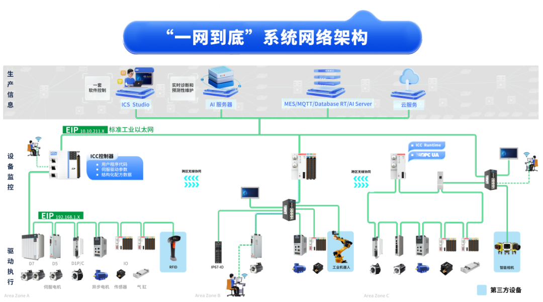“一網到底”架構打破數據孤島,深度融合IT與OT,為工藝優化、異?;厮荨㈩A測性維護以及5G工業互聯提供數據支撐。通過確定性傳輸和低延遲技術,確保關鍵數據實時、準確傳遞,為智能工廠建設奠定堅實基礎。