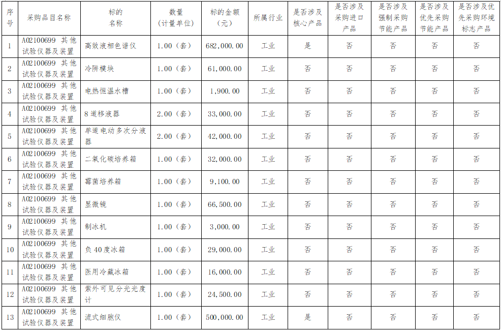 項目名稱:實驗室專用儀器設備采購項目