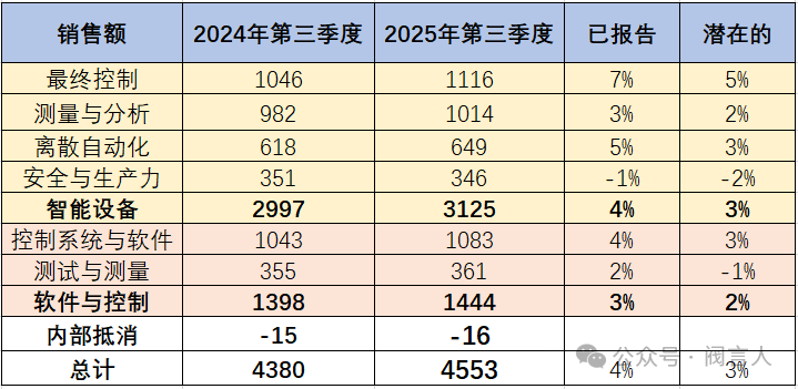 2025年度的第三季度,艾默生集團(tuán)凈銷售額為45.5億美元(合計人民幣378億元),相比去年同期增長4%,其中和閥門、執(zhí)行器、控制閥、定位器相關(guān)的最終控制板塊為11.2億美元(合計人民幣80億元),相比去年同期增長7%。