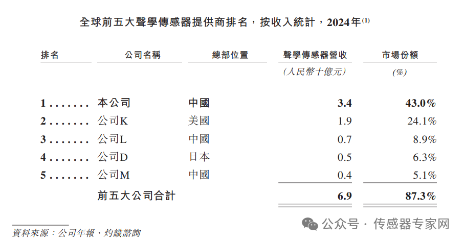 MEMS聲學(xué)傳感器:中國廠商合計(jì)占全球57%,最高企業(yè)排名第 1