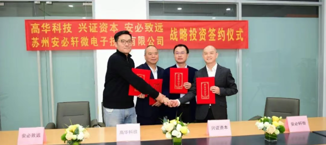 10月30日,高華科技參股安必軒戰(zhàn)略投資簽約儀式于蘇州高新區(qū)集成電路創(chuàng)新中心成功舉辦。在儀式上,南京高華科技股份有限公司董事長、總經(jīng)理李維平、興證資本先進(jìn)制造中心總經(jīng)理徐長銀、安必致遠(yuǎn)總經(jīng)理曹雪冬與蘇州安必軒微電子技術(shù)有限公司董事長蔡激文共同簽署股權(quán)投資合作協(xié)議,標(biāo)志著高華科技和安必軒在光電傳感領(lǐng)域的深度合作正式啟動。