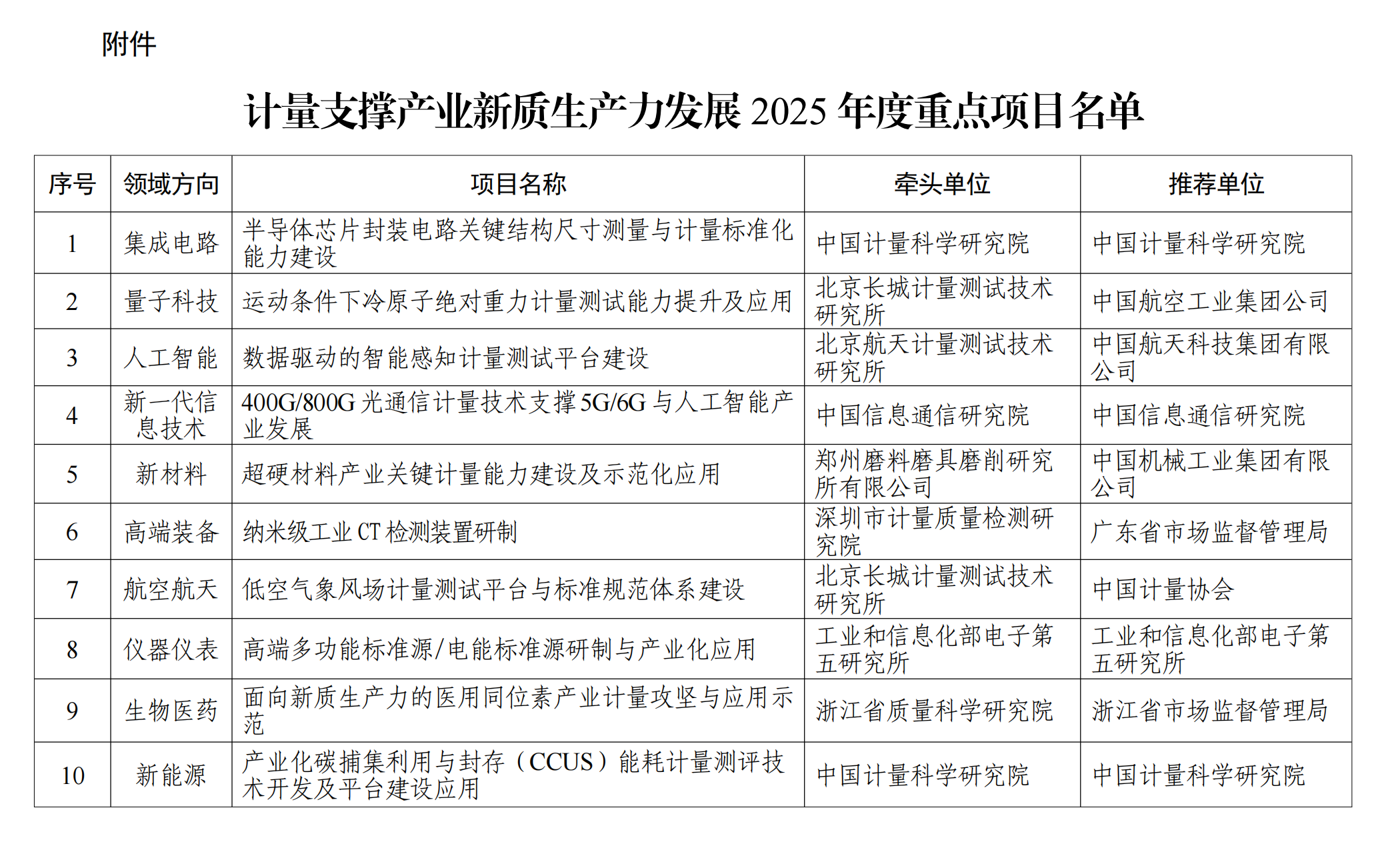 附件:計(jì)量支撐產(chǎn)業(yè)新質(zhì)生產(chǎn)力發(fā)展2025年度重點(diǎn)項(xiàng)目名單