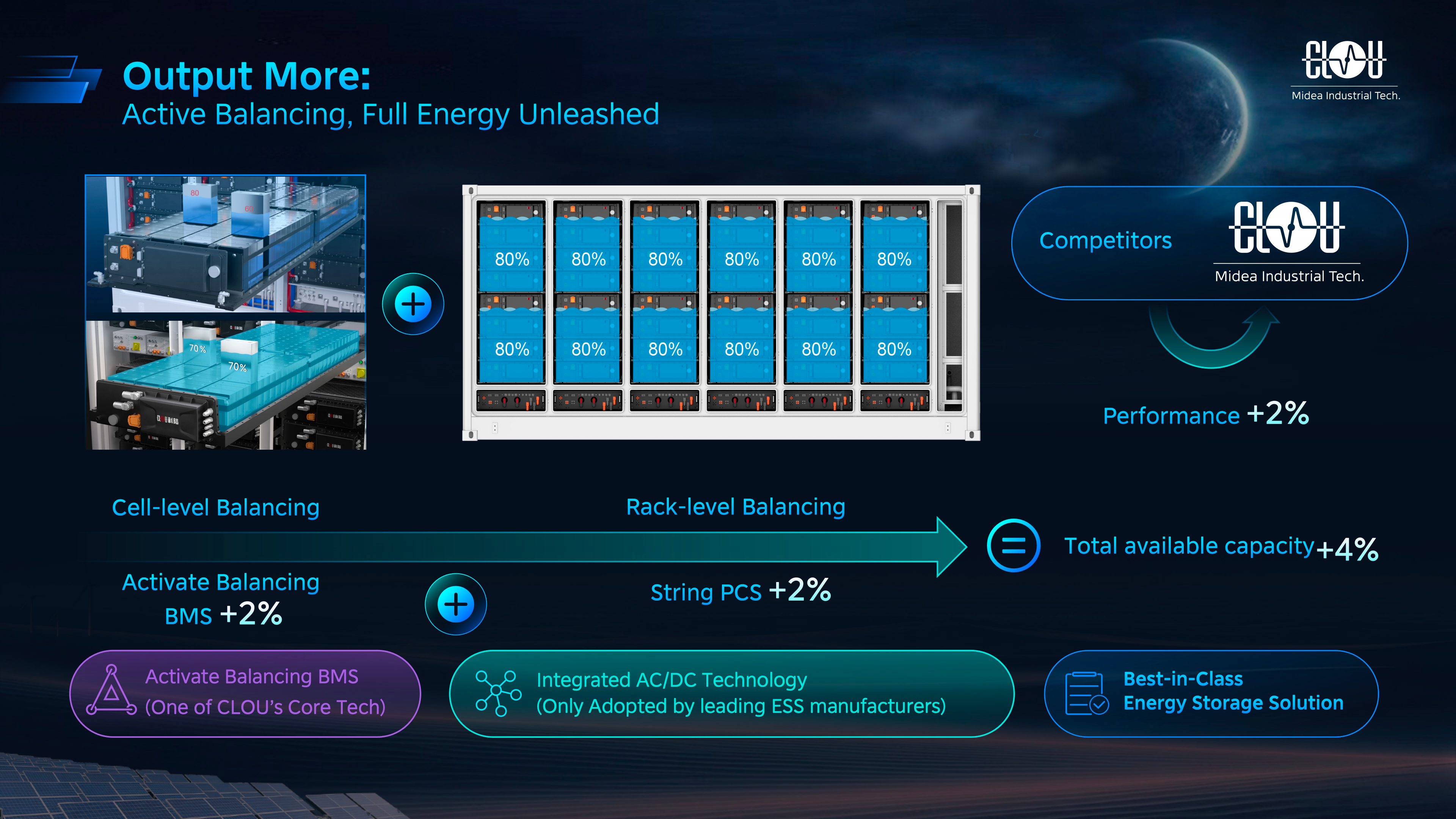 為優化投資、降低施工成本,Aqua-C2.5S mini 支持 DC+AC 廠內預組裝,設備現場安裝調試僅需3天,時間縮短50%;直流電纜不出倉設計進一步降低現場施工安全風險。主動均衡 BMS 技術可解決被動均衡長時間運行導致的電池包內部電芯不一致問題,避免系統停機人工均衡補電,大幅節省維護成本、提升運營效率。