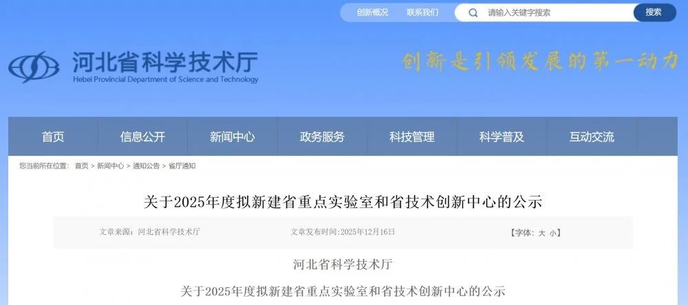 河北省科學(xué)技術(shù)廳關(guān)于2025年度擬新建省重點(diǎn)實(shí)驗(yàn)室和省技術(shù)創(chuàng)新中心的公示