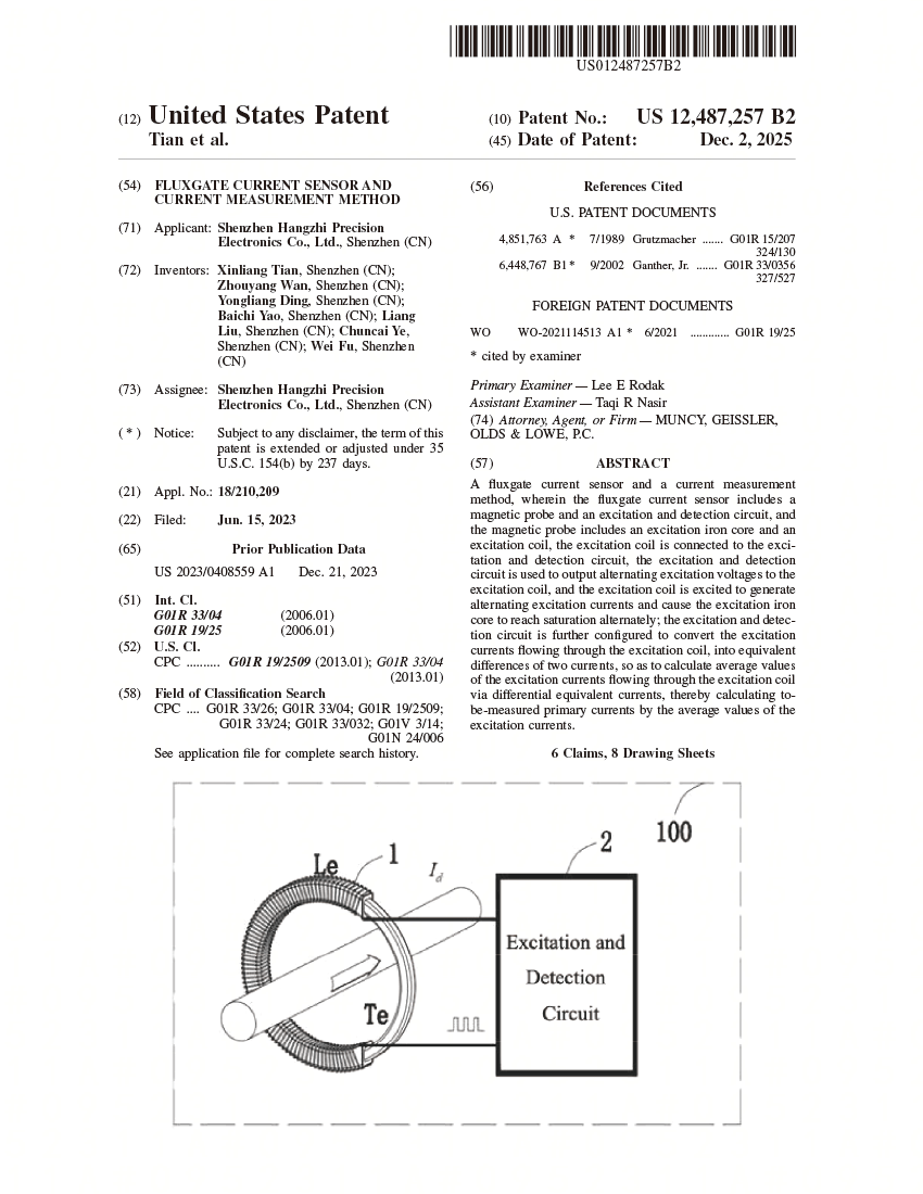 深耕高精度電量測量技術(shù)多年,航智始終秉持“技術(shù)為驅(qū)動(dòng),客戶為中心,品質(zhì)為生命線”的理念,憑借自主核心技術(shù)構(gòu)建起覆蓋電流傳感器、電壓傳感器、電測儀器儀表的完整產(chǎn)品線,產(chǎn)品廣泛應(yīng)用于新能源、醫(yī)療設(shè)備、計(jì)量校準(zhǔn)、科研院所、軌道交通等關(guān)鍵領(lǐng)域。此次美國發(fā)明專利的獲批,是航智技術(shù)創(chuàng)新之路的重要里程碑,更是服務(wù)全球客戶的新起點(diǎn)。