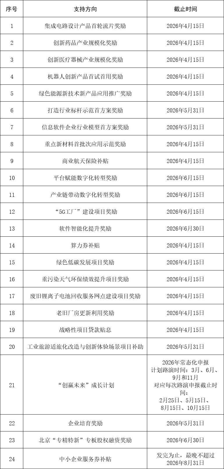 2.符合方向1-21、方向23條件的申報(bào)單位可在2026年3月4日至申報(bào)截止時(shí)間內(nèi)登錄北京市人民政府門戶網(wǎng)站“政策兌現(xiàn)”頻道(https://zhengce.beijing.gov.cn),選擇相對(duì)應(yīng)的項(xiàng)目,按照指引填報(bào)相關(guān)企業(yè)信息及對(duì)應(yīng)材料。