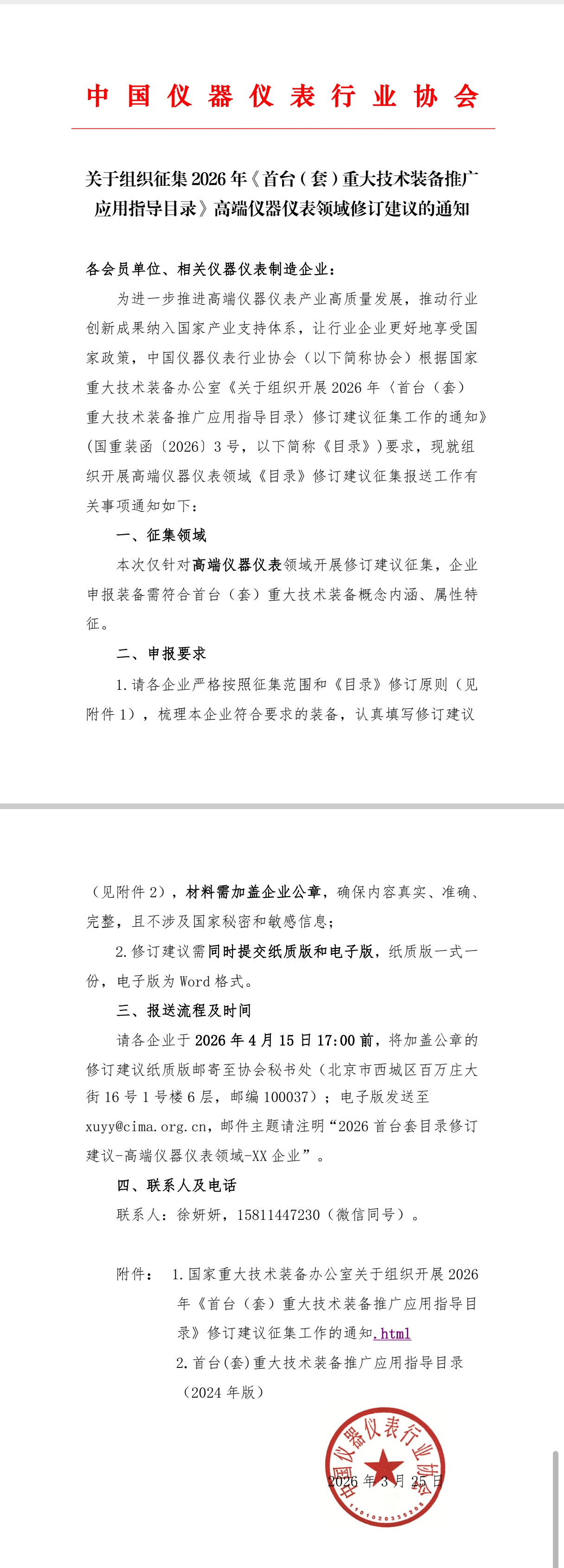 1. 國家重大技術(shù)裝備辦公室關(guān)于組織開展 2026 年《首臺(tái)(套)重大技術(shù)裝備推廣應(yīng)用指導(dǎo)目錄》修訂建議征集工作的通知