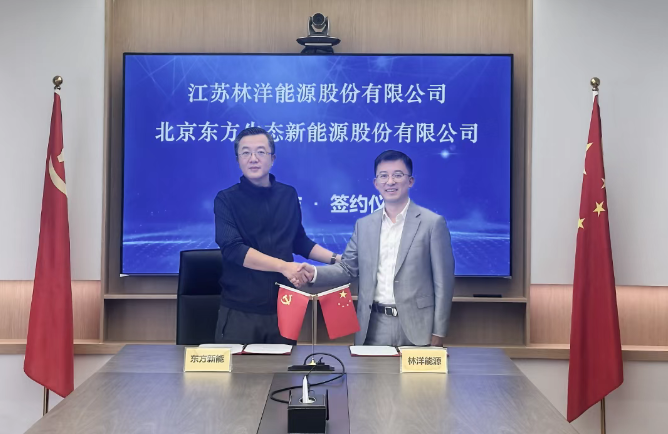 4月16日,江蘇林洋能源股份有限公司(以下簡稱“林洋能源”)與北京東方生態(tài)新能源股份有限公司(以下簡稱“東方新能”)在北京正式簽署戰(zhàn)略合作框架協(xié)議。東方新能副總經(jīng)理兼董事會秘書于旸,林洋能源副總裁兼董事會秘書崔東旭等共同出席簽約儀式。